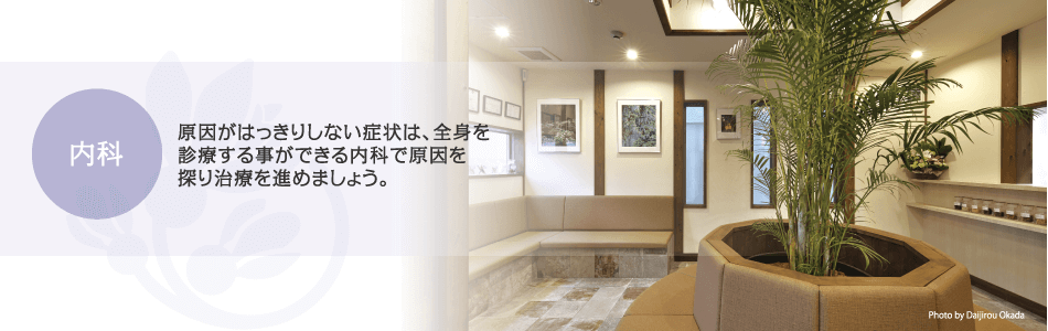 発熱や咳、鼻水などの風邪の諸症状から胃腸障害、生活習慣病(糖尿病・高血圧・高脂血症・メタボリックシンドローム)の管理など、幅広く診療しております。